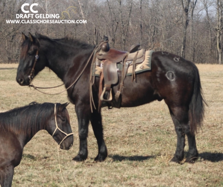 WWW. CLASSICHORSEAUCTION. COM THIS HOSE IS LOCATED Brownstown, IL SKIP THE AUCTION PRICE: 6500 CURRENT BID: 3000 To view health docs, see consignor’s info, how to schedule a meeting to try it out, visit our site.. https://classichorseauction.com/auctions/cc/ VIDEO >> https://youtu.be/Mdhh1zzJ7NM Introducing CC, a 16.2-hand grade draft-cross gelding! CC has been trail-ridden everywhere, from local state parks to the mountains of Colorado. We’ve used him to gather cattle from the pasture and push roping steers up to the chutes. He has also been ridden English and started over 2.5-foot jumps. He sure is a pretty mover, too! CC is used to being around all types of farm animals and equipment and is traffic safe. He takes both leads correctly and really tucks his hindquarters when he stops! He backs up softly and collected as well. Additionally, CC has been used to pony colts through the woods and in the arena. Point him in any direction, and he’ll go where you ask. This big, solid gelding has the stamina to go all day for you! He’s super gentle to be around—walk right up to him in the pen, and he’ll let you catch him with no fuss. He is 100% sound in every way and is up to date on everything. Brownstown, IL Emily 615-542-4564 Classic Horse Auction 931-224-2968