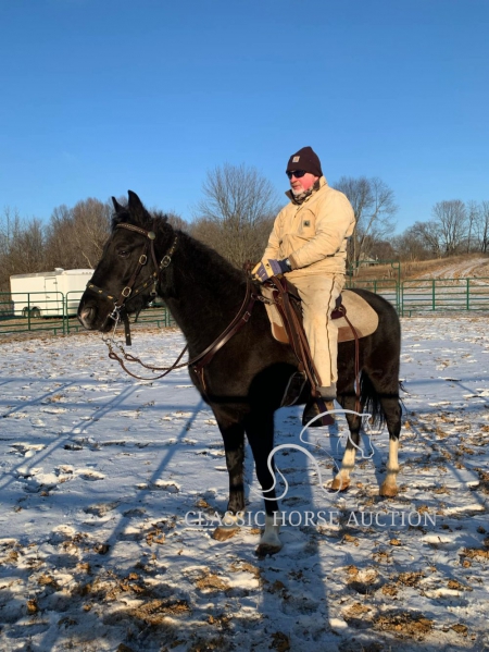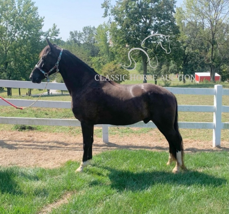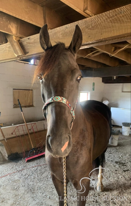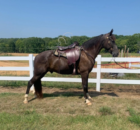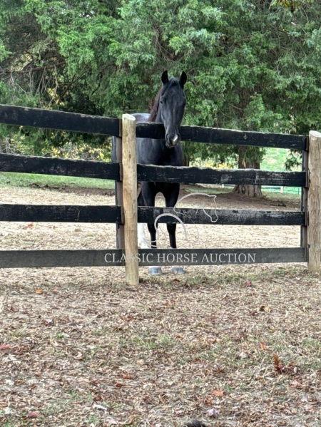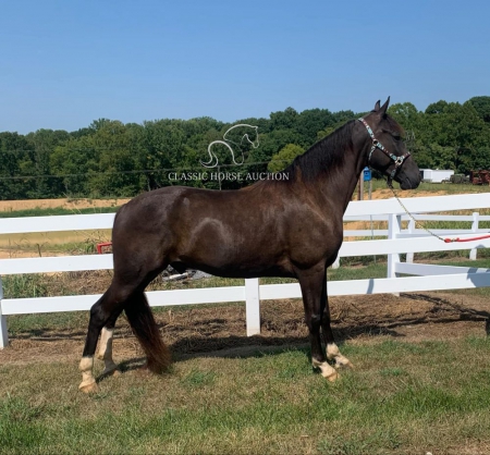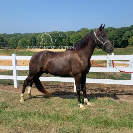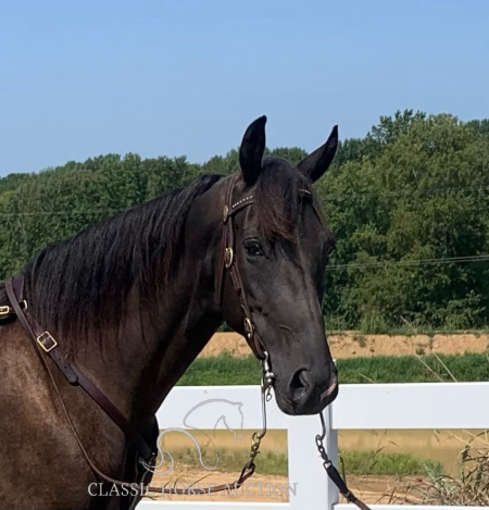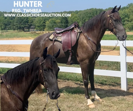 WWW. CLASSICHORSEAUCTION. COM THIS HOSE IS LOCATED: Boonville, IN CURRENT BID: 3000 BUY NOW: 7800 To view health docs, see consignor’s info, how to schedule a meeting to try it out, visit our site.. https://classichorseauction.com/auctions/hunter-2/ VIDEO >> https://youtu.be/CtsKSnGr0ek Walkin The Moon (Hunter) is a coming 6 yr old registered TWHBEA gelding. He stands a little over 15.2 hands tall. This high-headed gelding has bloodlines going back to The Pushover, The Pusher CG, Delight of Pride, Pride of Midnight and Pride’s Secret Threat. His naturally smooth gait makes him extremely comfortable on the trial or gives him potential for the show ring. This is a gelding who LIKES being in the woods and does his best when given a job. For nearly 2 years, we have used Hunter for trail riding, and he has shown us he will go over, under or through anything you point him towards without hesitation or silliness. Whether you are riding on the road with traffic or on the trail encountering water, brier patches, ditches, mud, downed trees or large logs, Hunter will keep you safe and plow through the terrain. He has been great at teaching the younger horses how to navigate in the woods. Hunter is content being in the front or back and does not get nasty when other horses are right on his tail. We have also ridden him alone, and he has never shown any sign of being barn or buddy sour. Hunter stays broke whether ridden weekly or monthly. He has never bucked, reared, kicked or shown any sign of aggression. This gelding would best be suited for a serious trail rider who wants to cover the ground. Hunter has a motor and likes to move out when riding. Due to this, he would not ride well with slower gaited horses or stock breeds. However, his energy is controllable, and he does not pull on the bit or fight the rider. Hunter is a joy to ride. Hunter parks out on command from the ground or from the saddle. He stands great for mounting, loves to be groomed and to be given a bath, is great for the farrier and does all the basics like loading/unloading etc. He is in the middle of the pecking order and pastures well with other geldings. He has not been pastured with mares since we own none. He has been exposed to large dogs running around the farm, been pastured next to cows and has watched heavy equipment of all types coming and going on the farm. Hunter is 100% healthy and sound. He is up-to-date on all dental work, vaccinations, deworming and farrier care. He has excellent hooves and needs no fancy shoes or gimmicks to make him gait smoothly. As with any horse, Hunter is not perfect, and he will need time to warm up to his new owner. He can be timid and cautious around people he is not used to, but he comes around quickly with treats and time spent with him. He is also not a fan of a mounting block (but it’s not needed since he parks out perfectly) or a feed scoop for some reason. These issues are small, but we want to make sure the new owner is aware. If you are a person who loves to move down the trail on a beautiful horse who is smooth and experienced, check out Hunter. Boonville, IN Emily Elgin 615-542-4564 Nationwide Shipping Assistance Available Classic Horse Auction 931-224-2968