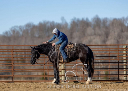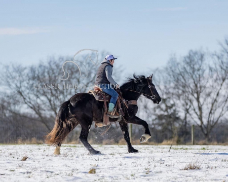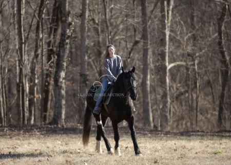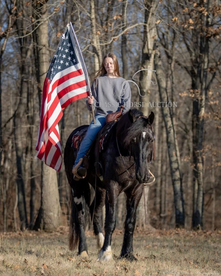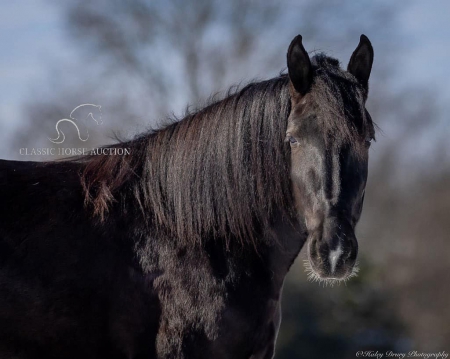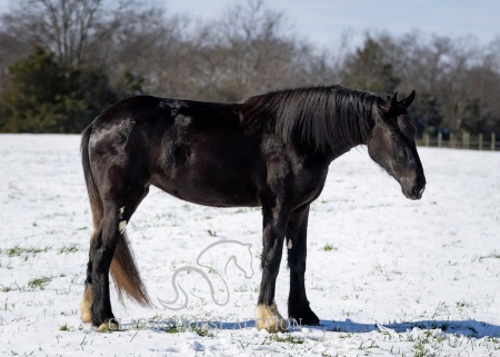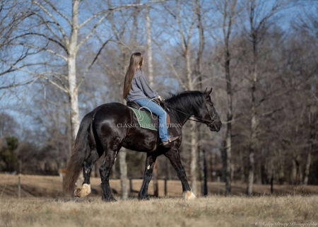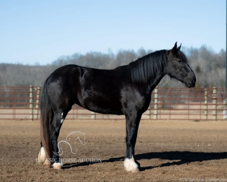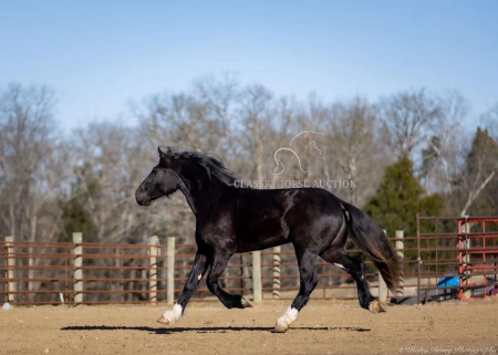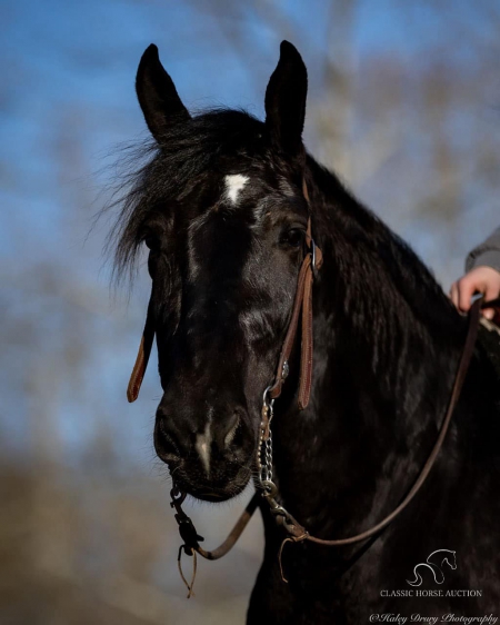 WWW. CLASSICHORSEAUCTION. COM THIS HOSE IS LOCATED: Auburn, KY BUY NOW: 15000 CURRENT BID: 5500 To view health docs, see consignor’s info, how to schedule a meeting to try it out, visit our site.. https://classichorseauction.com/auctions/jocelyn/ VIDEO >> https://youtu.be/1l_P1gSEJDY Calm, patient, & affectionate. Jocelyn is an impressive, 3yr old, black, Shire mare, currently standing 16.2 hands. She rides English, Western, & is family friendly! Jocelyn is an elegant mover with a floating trot & collected canter. Easily transitions from a trot to a canter, travels both directions on the collect lead, and has a good stop. Jocelyn has been on several trail rides. She has an uncomplicated riding style, easy going, and will ride alone or in a group. Crosses water, downfall, & navigates rough terrain. Jocelyn hauls well. Load & unloads, zero issues. She has accompanied us on trips to various locations and different arenas. She’s the same ride no matter where you unload her. Jocelyn has been trained to pick you up at the mounting block with the raise of your hand & the snap of your fingers. She’ll also stand quietly for dismount at the block. This is a super handy trick out on trail if you need the assistance of stump, rock, or log to mount. At home, Jocelyn is super easy to catch. When I come through the gate, her she comes following me to the barn. You can walk up to her anywhere and put her halter on. She is super easy to have around. She enjoys grooming & is easy to clip. She stalls well, always neat & tidy, or turns out in a mixed herd. Currently maintained on an all forage diet & daily access to pasture. She is comfortable around dogs, cats, farm machinery, atv’s, other livestock, and is traffic safe. Jocelyn is a safe young horse with a solid foundation. Whether you’re seeking a trail companion or a prospect for a specific discipline, I have no doubt that Jocelyn with be a reliable partner! If you have any further questions or would like to meet Jocelyn in person, feel free to reach out! Jocelyn sells with current coggins, recent wellness/soundness exam that she passed with flying colors, proof of vaccination, and health certificate required for transport. We can assist in arranging shipping to anywhere! EMILY 615-542-4564 Auburn, KY Nationwide Shipping Assistance Available Classic Horse Auction 931-224-2968